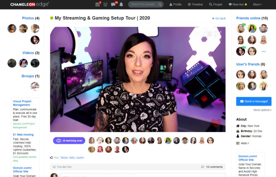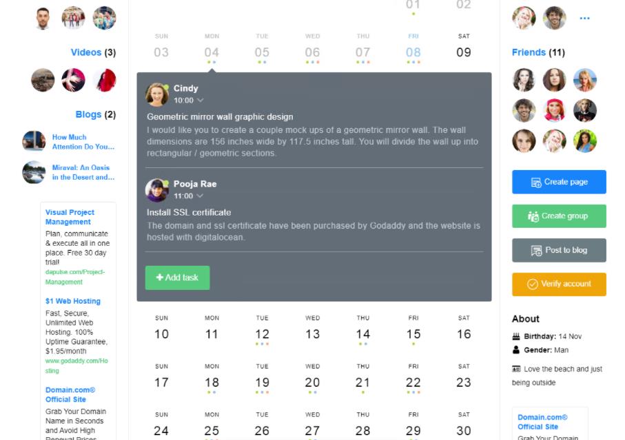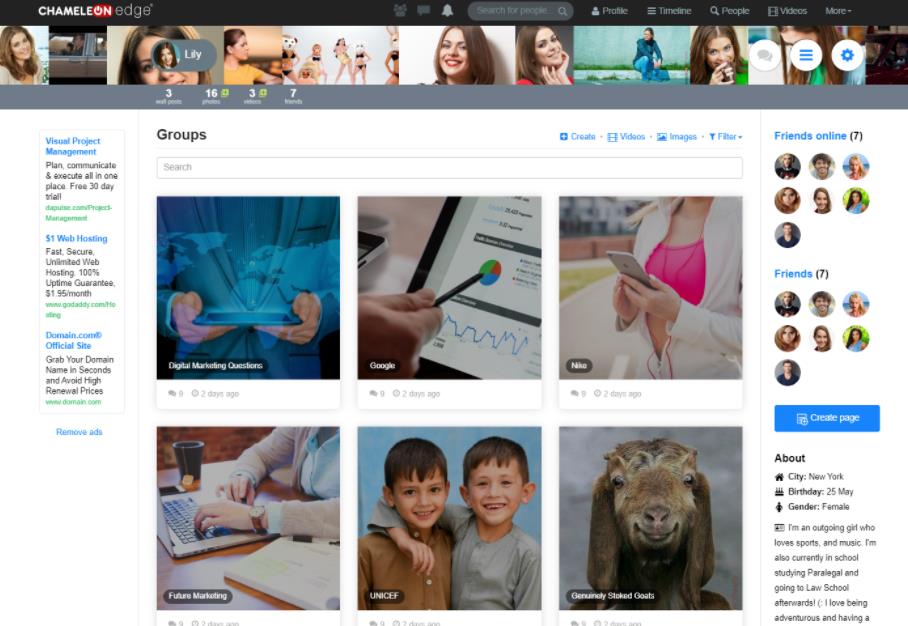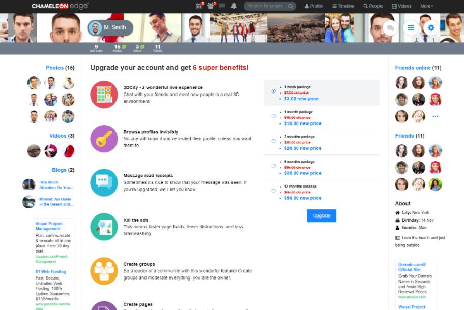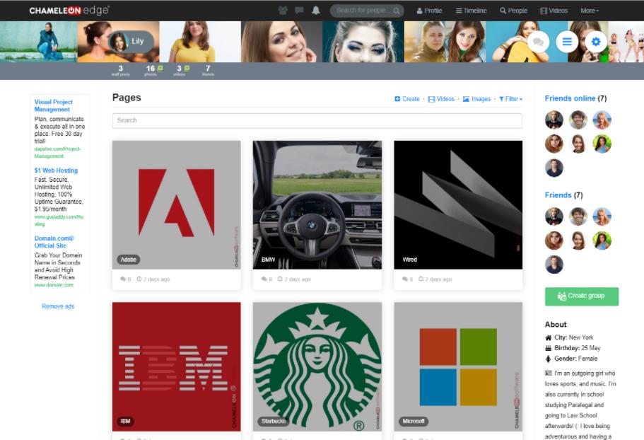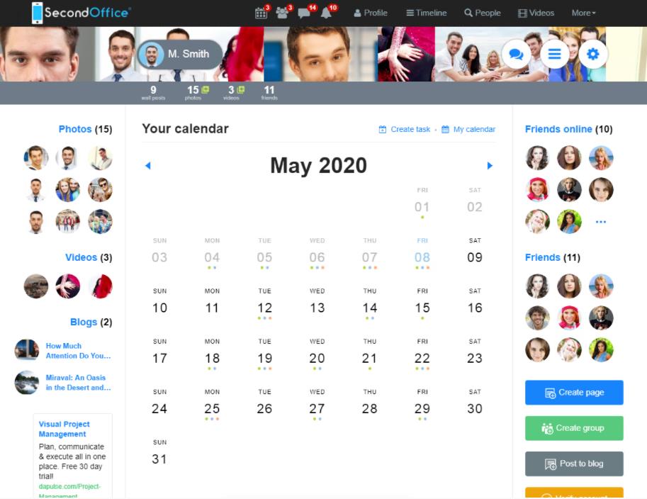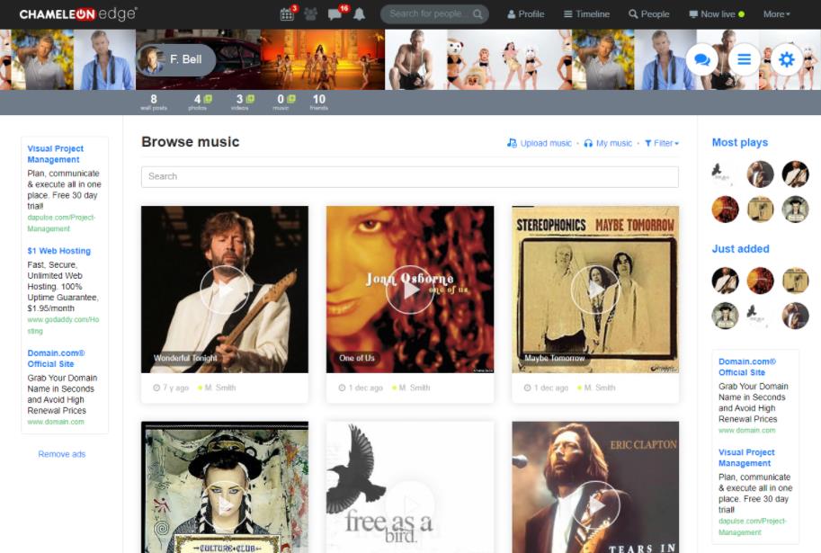 Each member feels unique so we developed a special means of underlining the uniqueness, the Smart Profile. Here the user can draw, publish videos and music, change background colors, etc.