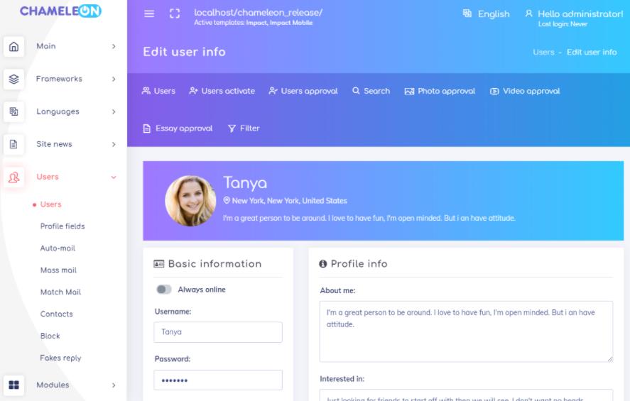 As the administrator you can control all the features of your website, switch them on and off, ban users, check the contents they upload, receive payments from the users, edit templates, and a lot more.